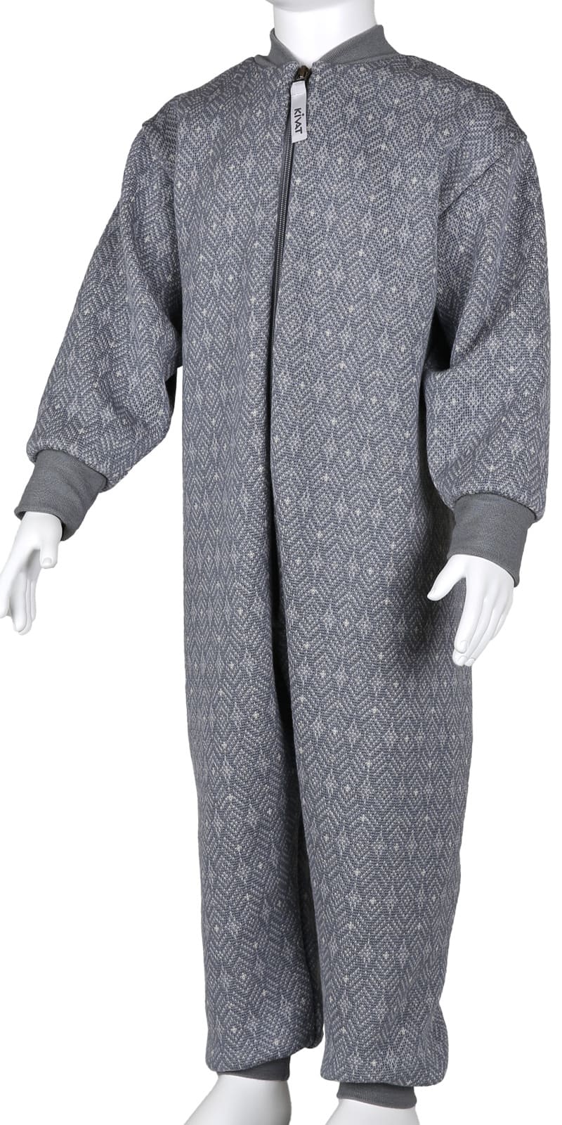 Overallen är tillverkad i mulesingfri merinoull – ett naturligt, mjukt och värmande material som andas och känns behagligt mot huden.